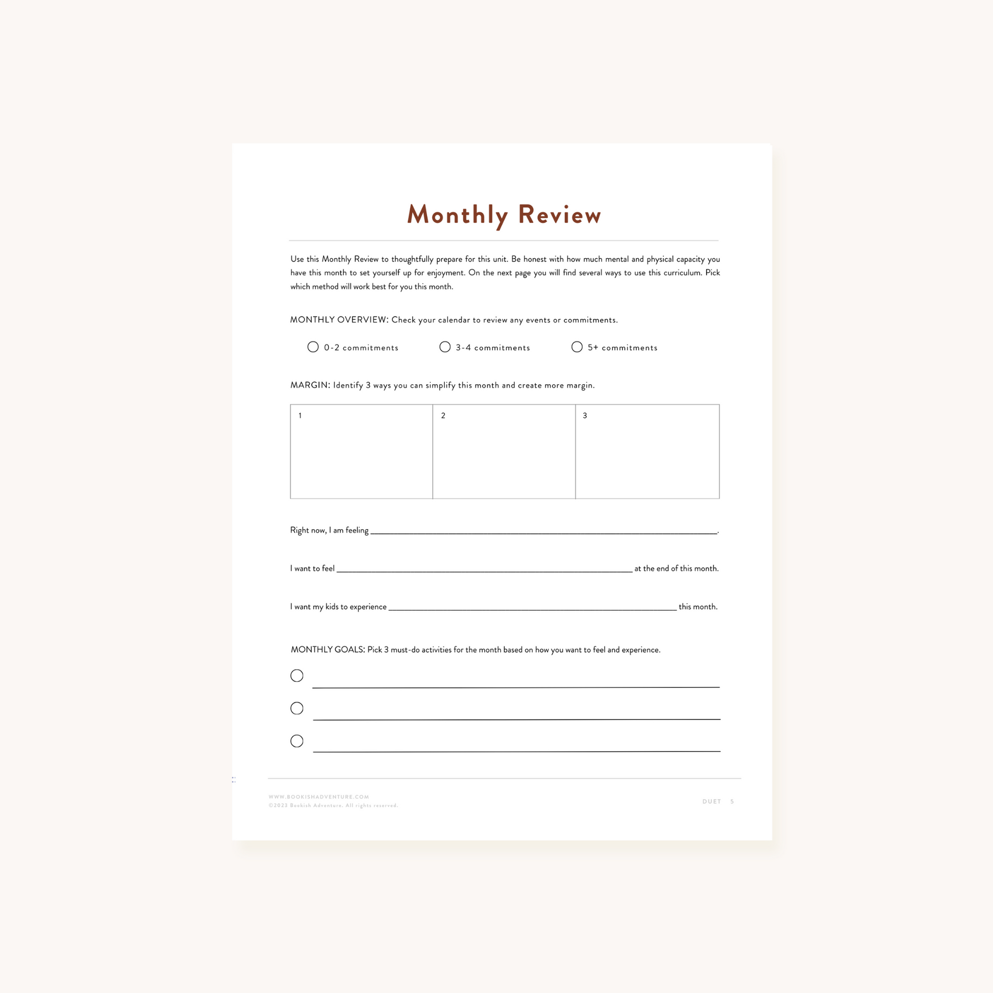 - Monthly overview and weekly plans