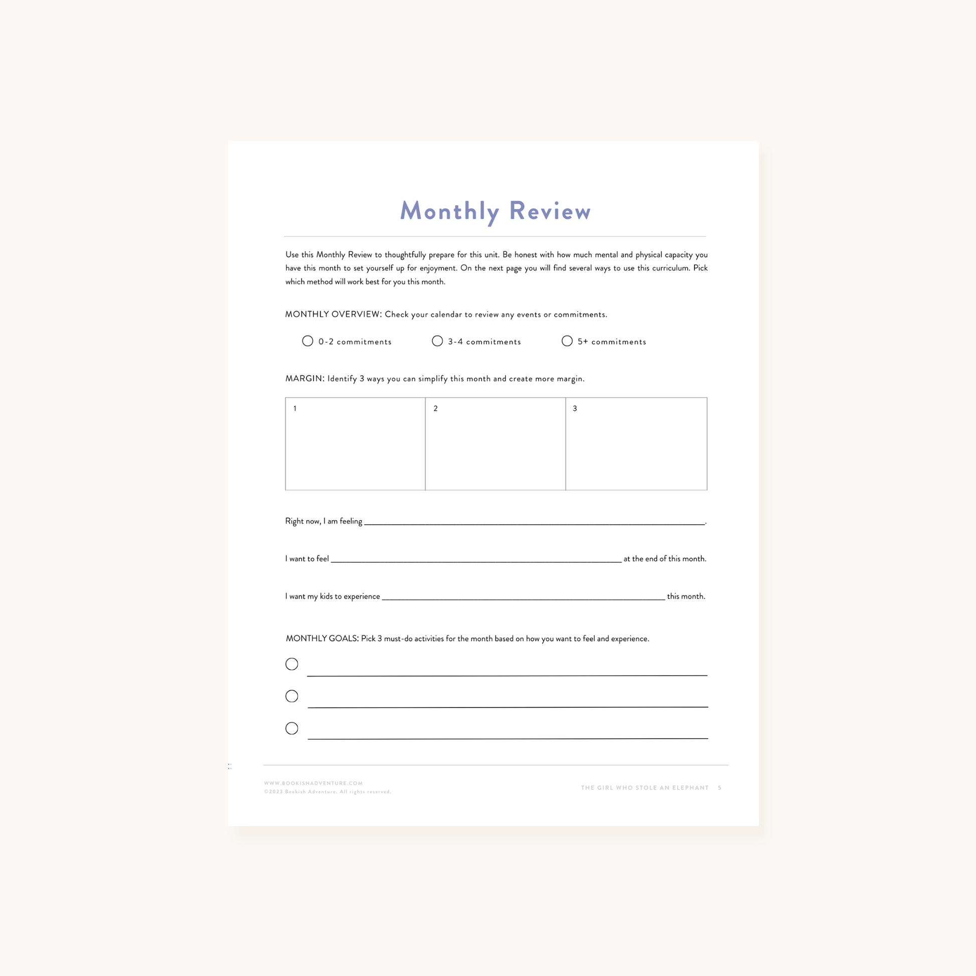 - Monthly overview and weekly plans